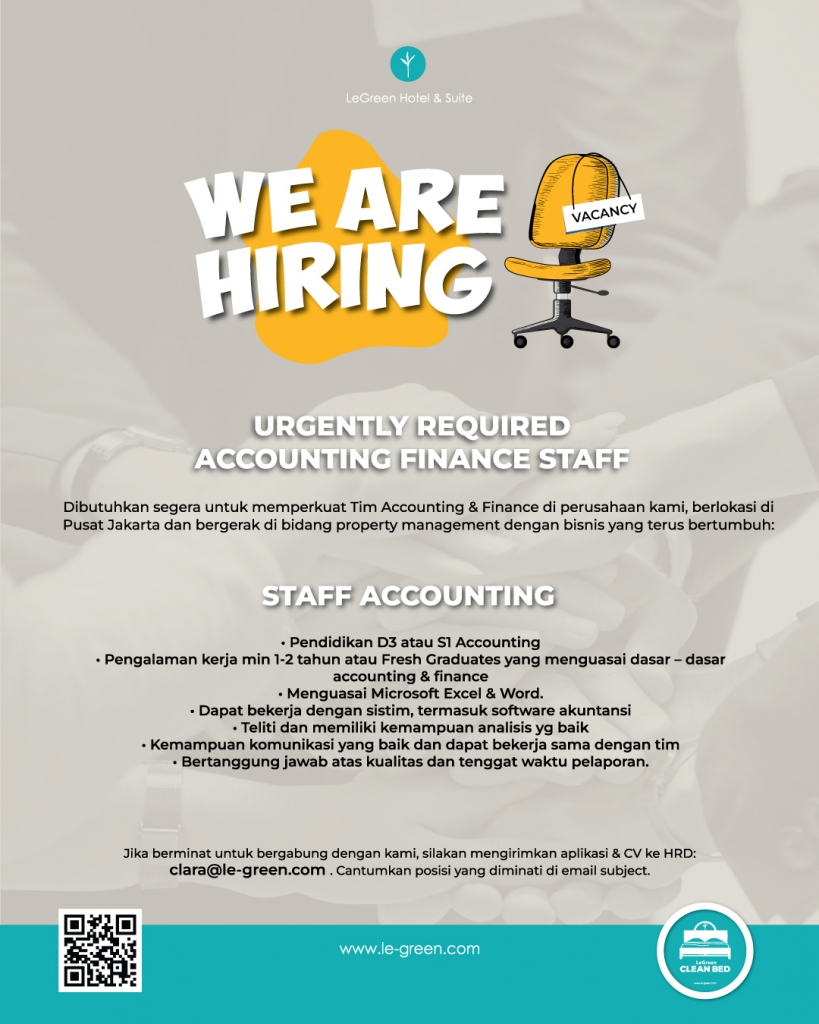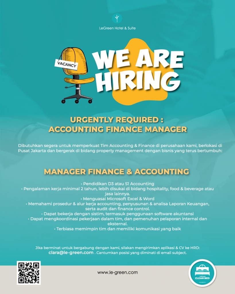 Segera kirimkan surat lamaran dan CV Anda ke clara@le-green.com | info@le-green.com.